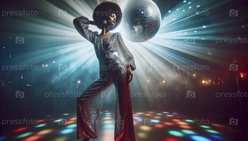 Диск 1970-х годов под зеркальным шаром, Ai generated image