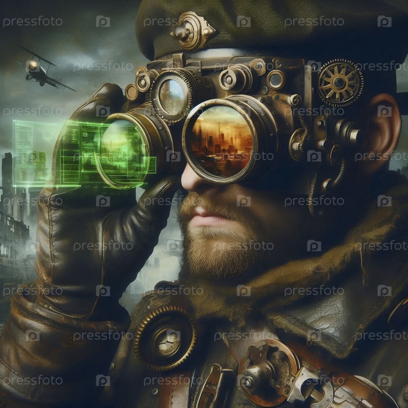 Солдат со стемпанковыми очками теплового зрения, Ai generated image