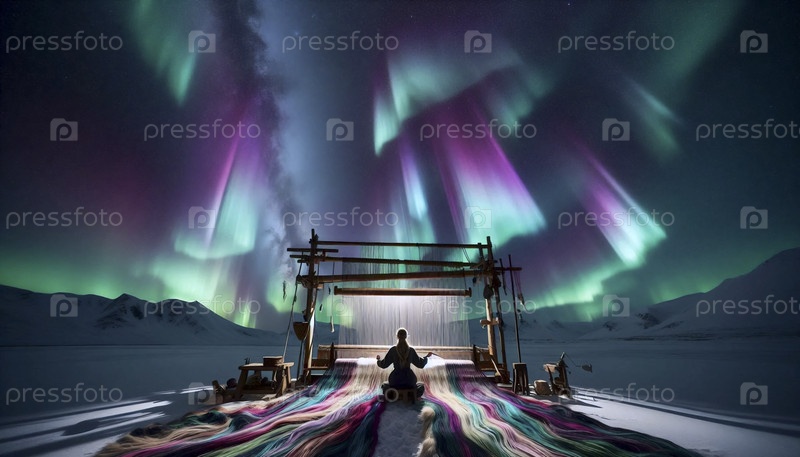 Женщина, плетящая гобелен северного сияния, Ай создала изображение