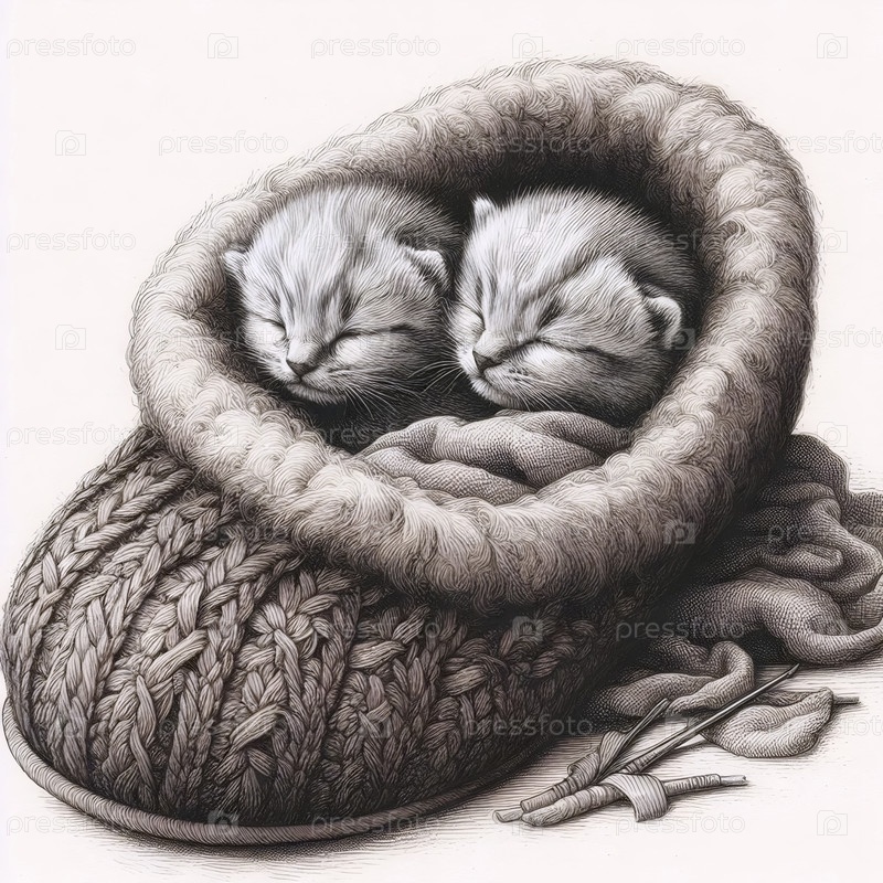 Два котёнка в ботинках чернила рисование художественная печать, Ai generated image