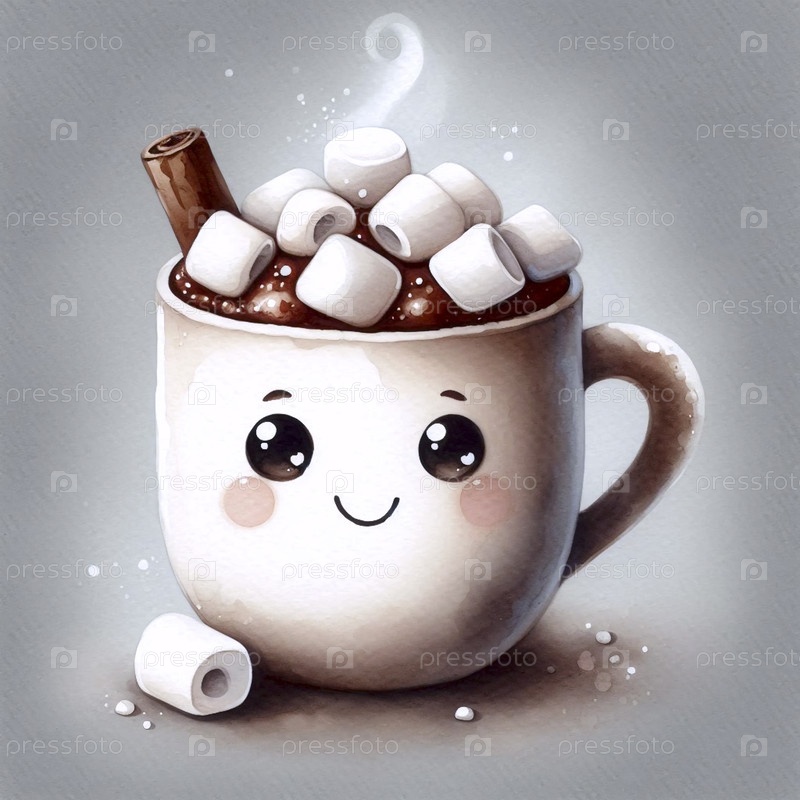 Уютная чашка какао акварель художественный печат, Ai A generated image