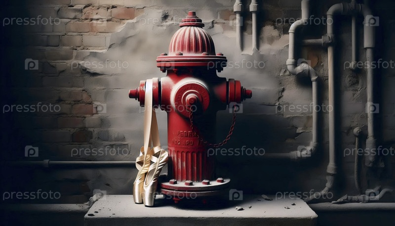 Обувь Pointe висит на пожарном гидранте за кулисами, Ai generated image