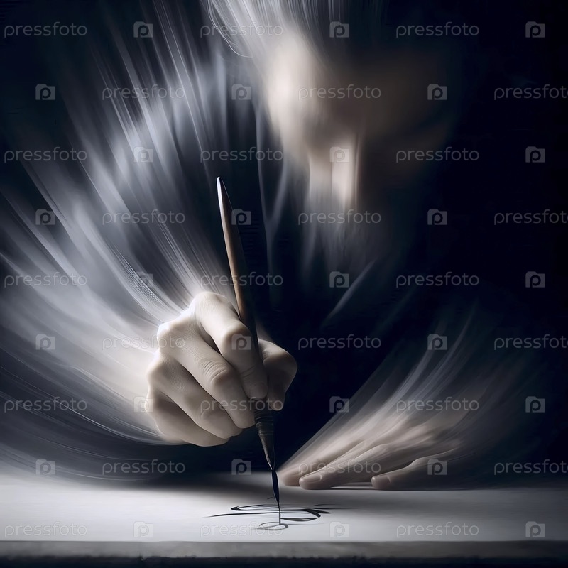 Фотография с длительной экспозицией, захватывающие удары ручкой каллиграфа, Ai generated image