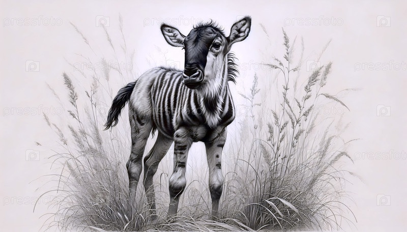 Малыш гну на саване чернилами рисует художественный принт, Ai generated image