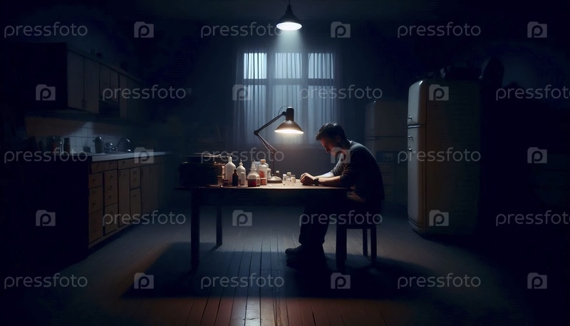 Для более широкого снимка, показывающего всю сцену одинокой кухни, Ай создал изображение