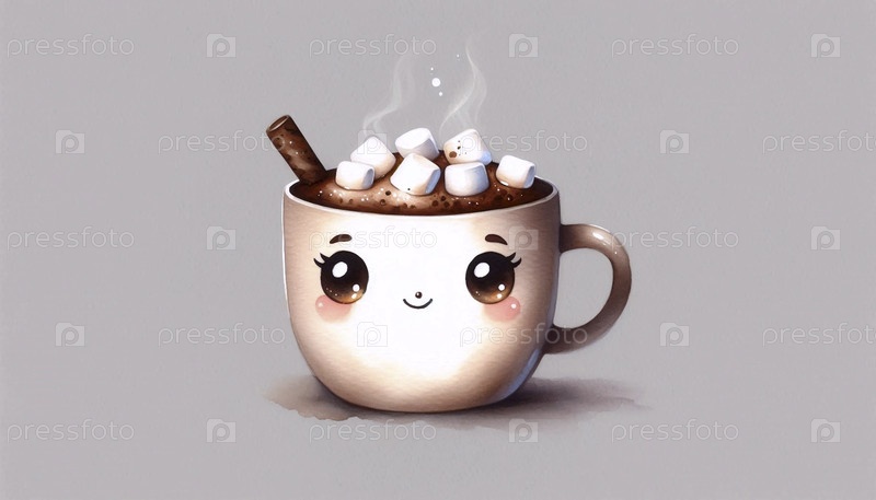 Уютная чашка какао акварель художественный печат, Ai A generated image
