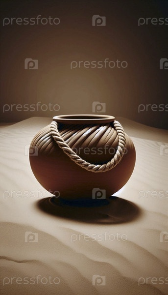 Макет необработанного терракотового растения с рукояткой из плетеной конопляной веревки, изолированный на песочнице, Ai generated image