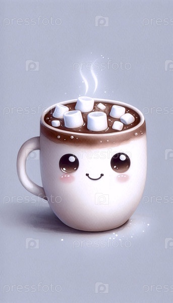 Уютная чашка какао акварель художественный печат, Ai A generated image