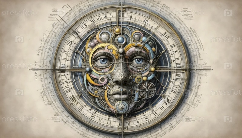 Сложное винтажное искусство часовой стрелки, Ai generated image