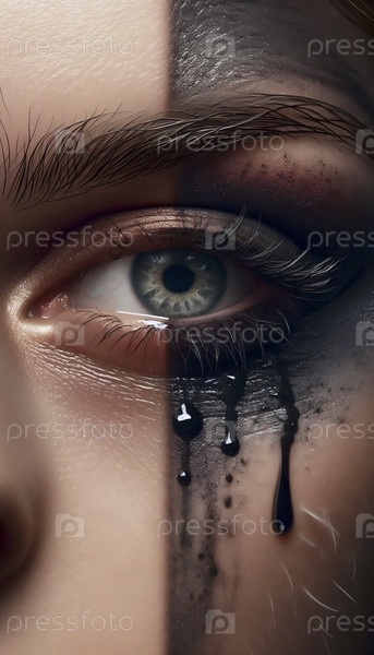 Глаз с наполовину удаленным макияжем сцены, Ai generated image