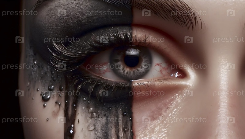 Глаз с наполовину удаленным макияжем сцены, Ai generated image