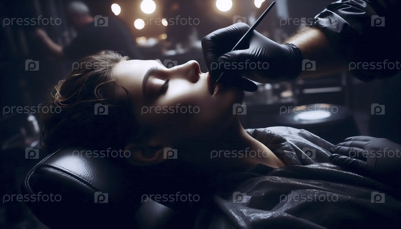 Более широкий снимок показывает актрису, опирающуюся на спину в кресле, сдаваясь процессу, Ай создал изображение