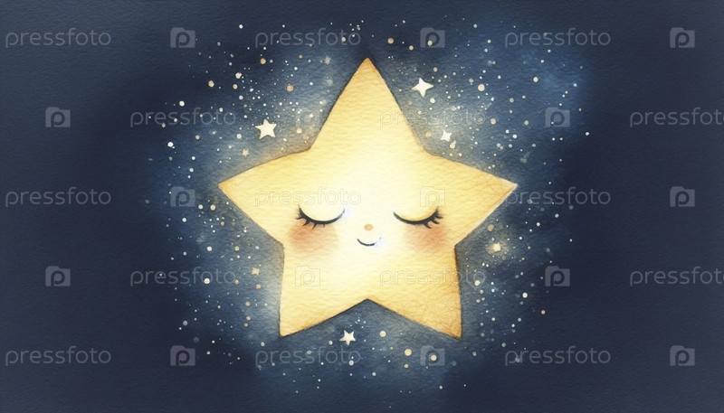 Мечтательная звезда акварельный арт-принт, Ai generated image A