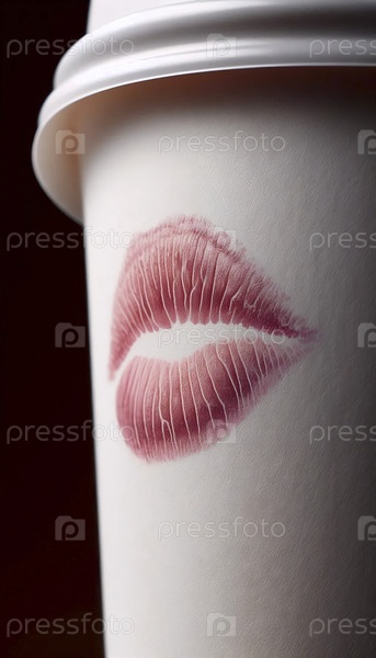 Макросъемка одного идеального отпечатка губ на краю чашки, Ai generated image