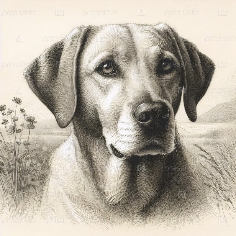 A loyal dog ink drawing art print, Ai generated image Искусственный печатный рисунок с чернилами верной собаки