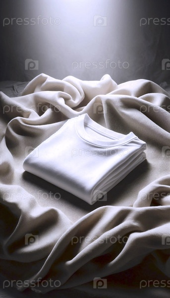 Мокет футболок из чистой белой органической хлопковой ткани, нежно сложенный на холсте из конопли, Ai generated image