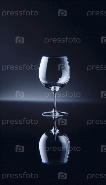 Пустой прозрачный макет винного стекла с длинным стволом, помещенный на отражающую черную поверхность, Ai создал изображение
