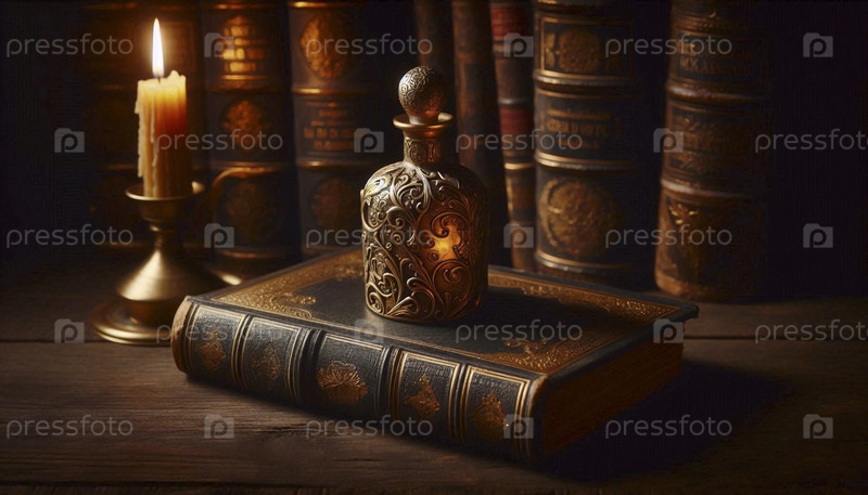 Оформленный макет бутылки парфюма в винтажном стиле, опирающийся на открытое изображение, созданное AI