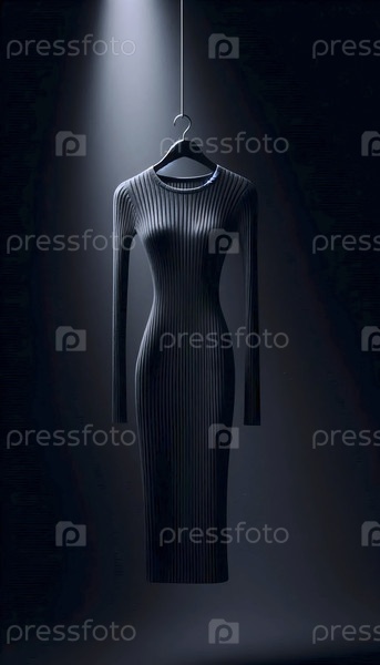 Макет модного платья, сделанного из ребрового древесного угля и висящего на бархатной ленте, Ai generated image