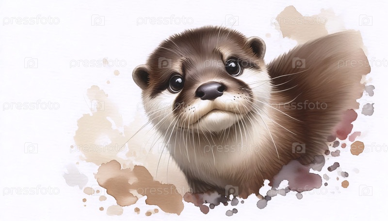 Адекватное акварельное произведение искусства "Оттер", Ai generated image