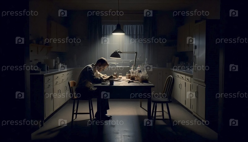 Для более широкого снимка, показывающего всю сцену одинокой кухни, Ай создал изображение