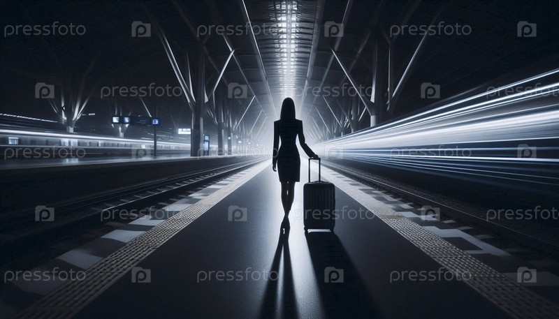 Широкий, минималистский снимок в темном пустом железнодорожном вокзале ночью Ai создал изображение