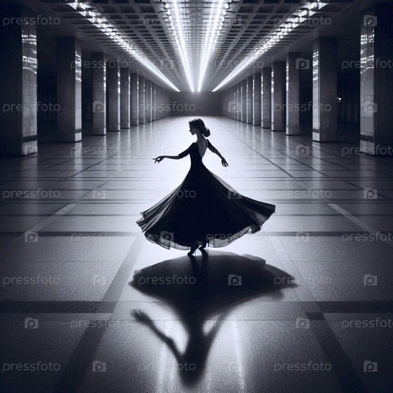Женщина вальсирует одна на пустой станции метро, Ai generated image