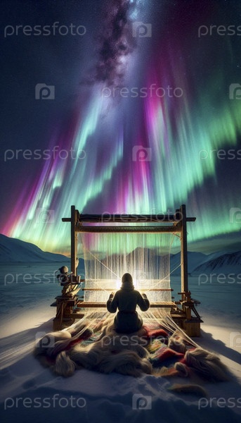Женщина, плетящая гобелен северного сияния, Ай создала изображение