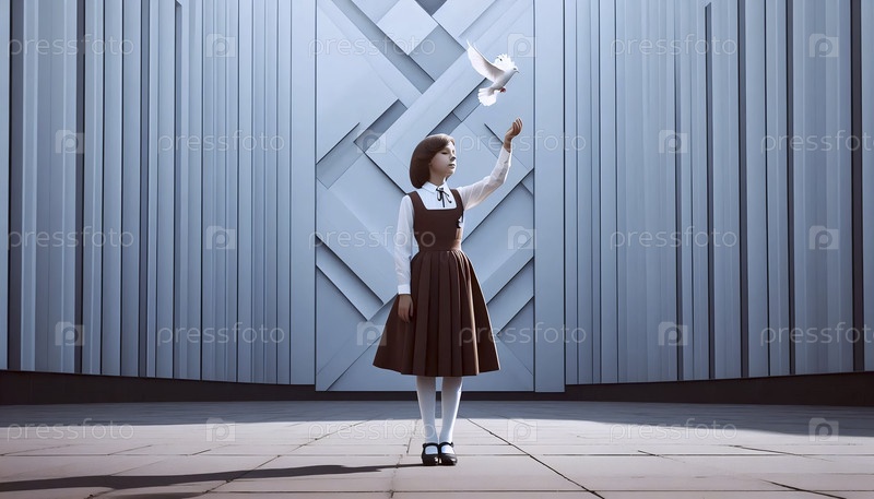 Советская школьница освобождает голубя, Ai generated image