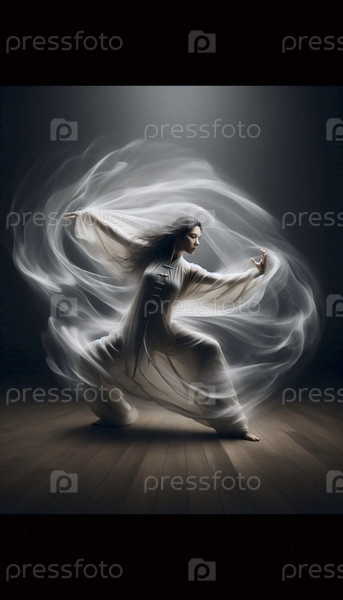 Фотография с длинной экспозицией, захватывающая практикующего тай-чи в движении, Ai generated image