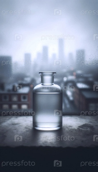 Одинокий макет пустой бутылки с парфюмом на туманном подоконнике, Ai generated image