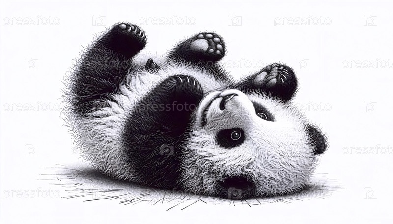 Panda Cub Playing ink A drawing art print, Ai generated image Панда Куб играет с чернилами рисуя художественную печать, Ай создал изображение