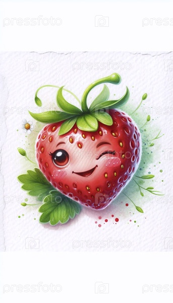 Ягоды с дерзкой улыбкой акварельная художественная печать, Ai generated image