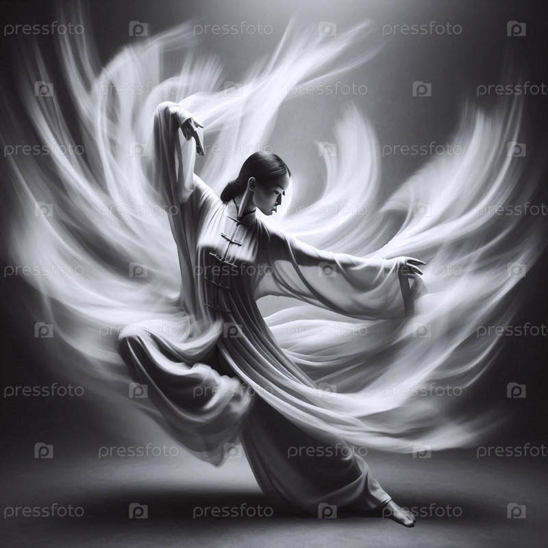 Фотография с длинной экспозицией, захватывающая практикующего тай-чи в движении, Ai generated image