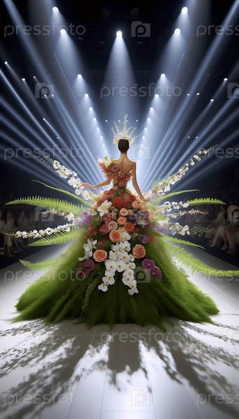 Платье, сделанное из живых цветов на взлетно-посадочной полосе, Ай создал образ