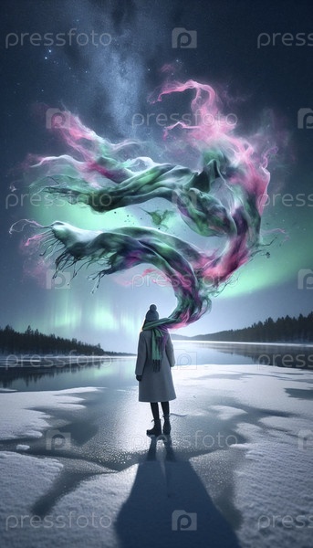 Шаль, превращающаяся в акварельное полярное сияние, Ai generated image