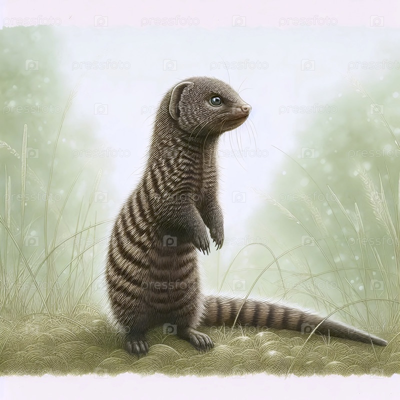 Щенок карликового мангуста стоит высоким чернилами и рисует художественную печать, Ai generated image