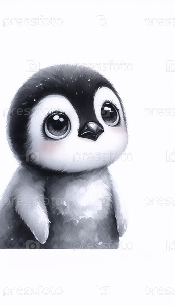 A Pleading Penguin акварельный художественный печат, Ai generated image