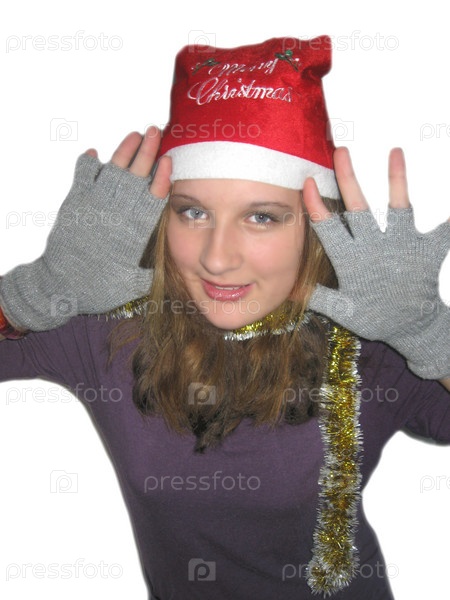 Девушка в новогоднем колпаке