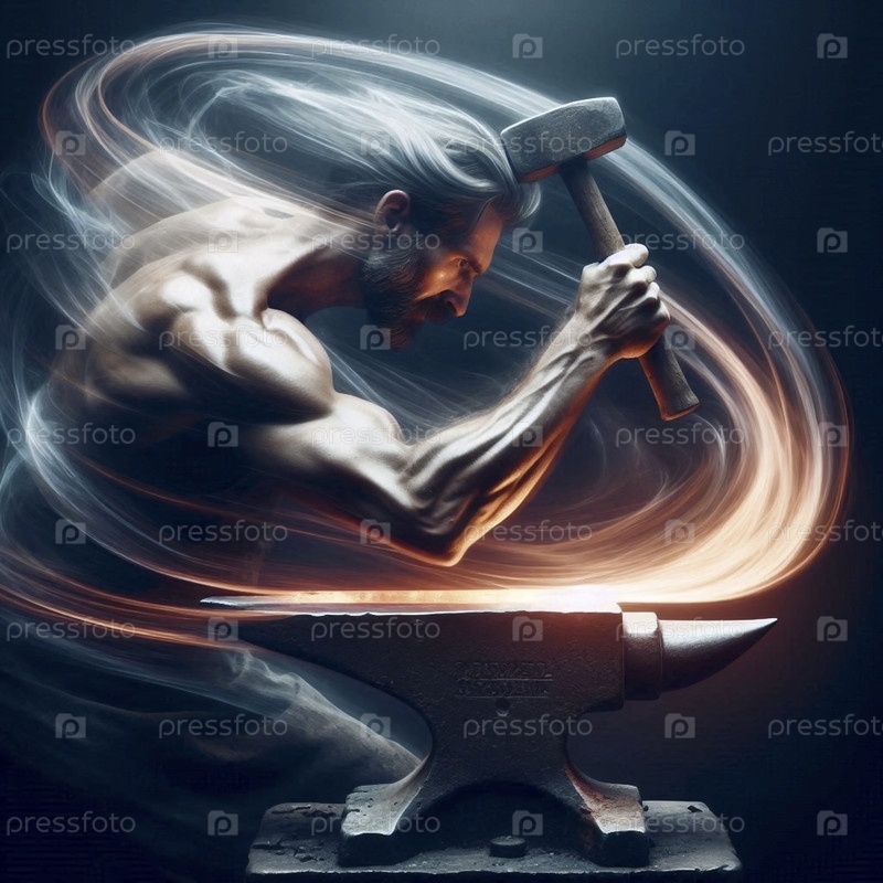 Фотография с длительной экспозицией, захватывающий удар молоток кузнеца, Ai generated image