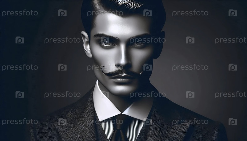 Портрет с закрытыми глазами, идеальная линия усов, Ai generated image