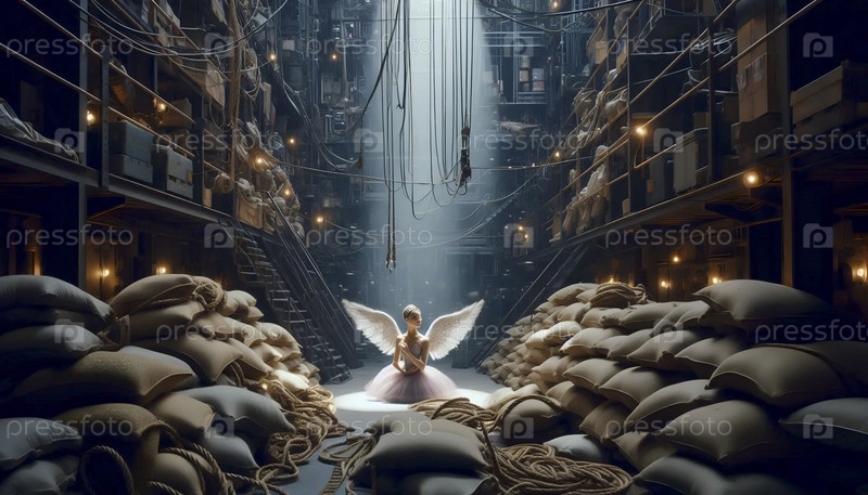 Более широкий снимок в переполненной промышленной зоне за кулисами, подчеркивая ее изоляцию, Ai создал изображение