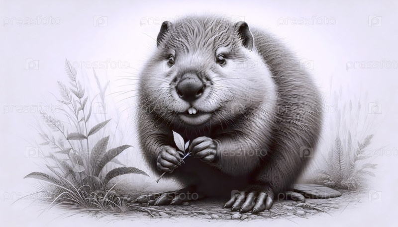 рисунок детского бобра с чернилами