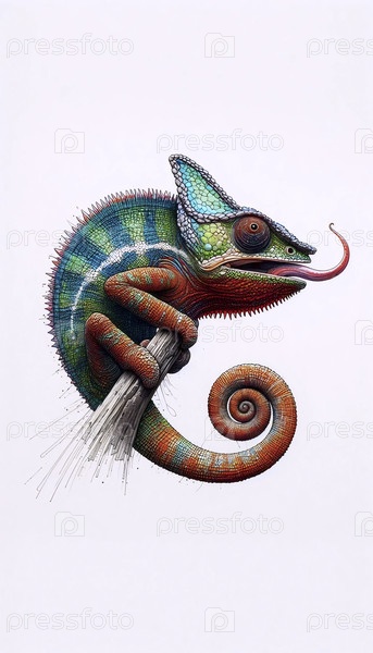 хамелеон с языковым чернильным рисунком