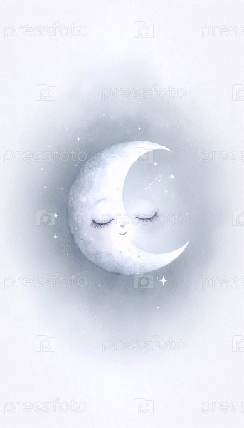 Спящая Луна акварельный арт-принт, Ai generated image A