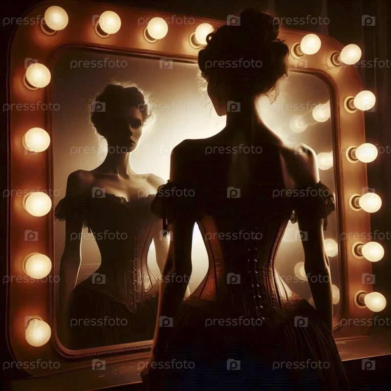 Силуэт в корсете против зажженного зеркала, Ай создал изображение