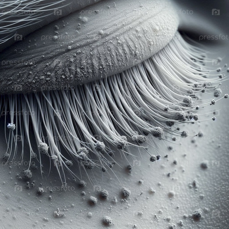 Ангельские ресницы с городской сажей, приклеенные к ним, экстремальный крупный план, Ai generated image