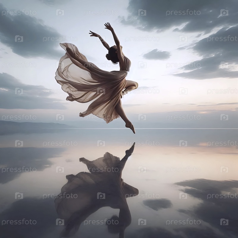 Современный танцор, прыгающий над водой, Ai generated image