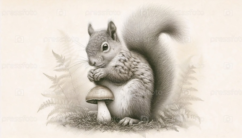 белка с грибным чернильным рисунком