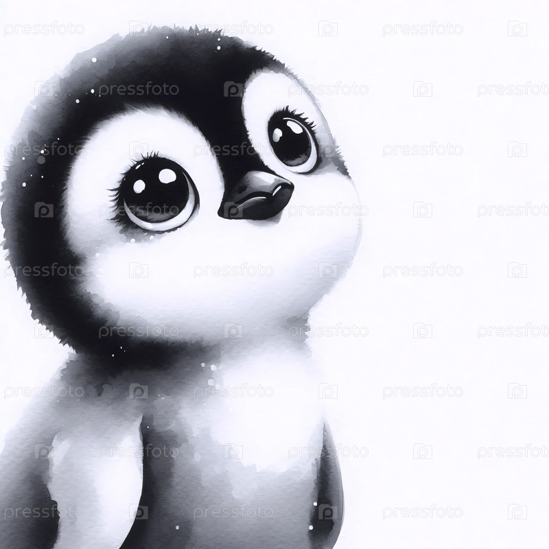 A Pleading Penguin акварельный художественный печат, Ai generated image